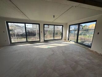 Maison neuve comprenant au rez-de-chaussée: une entrée, une cuisine ouverte sur séjour, un toilette et une buanderie.